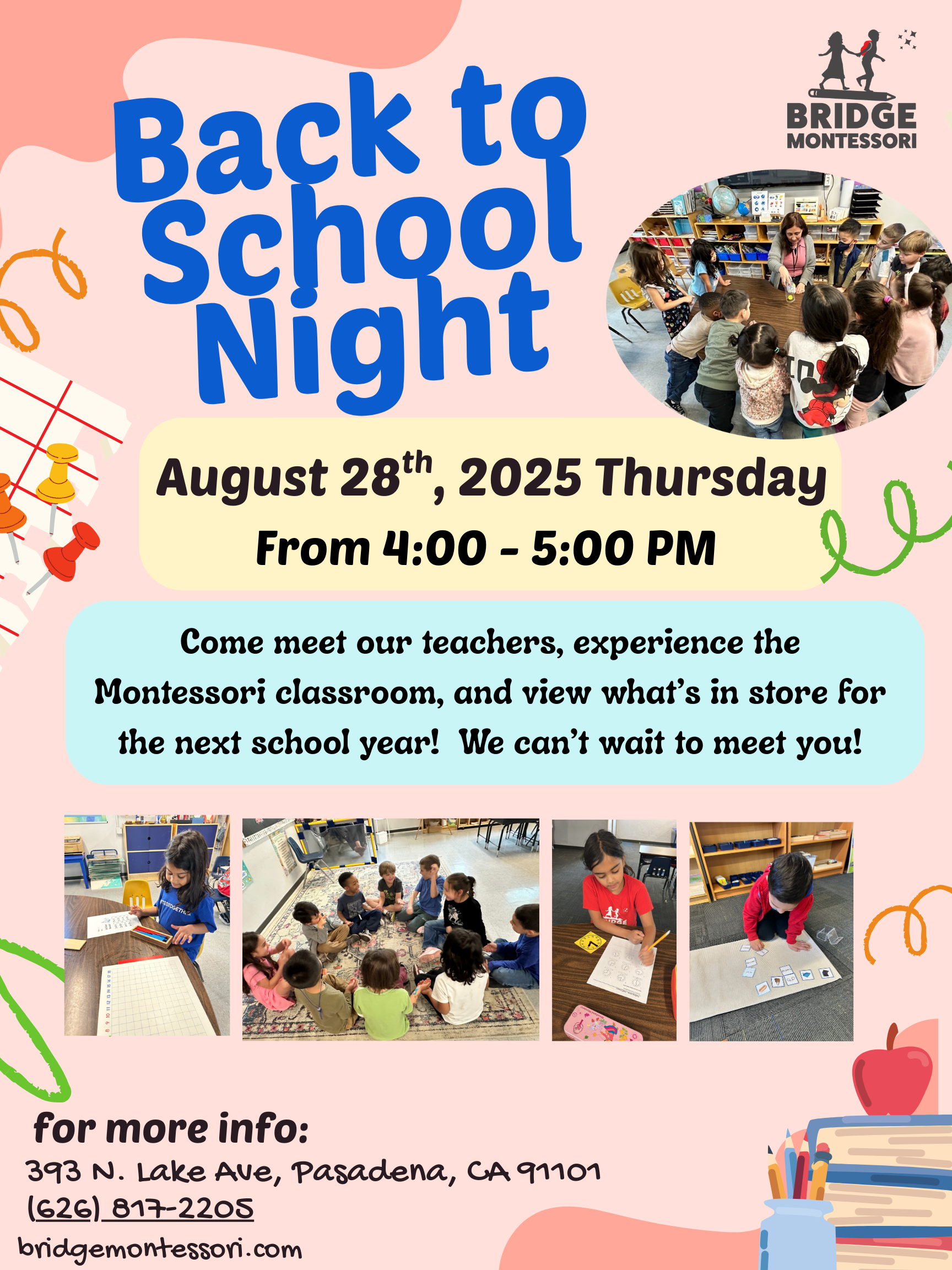 Join us for Back to School Night @ Pasadena Campus (Infants - 6th) 8/28 Thur.